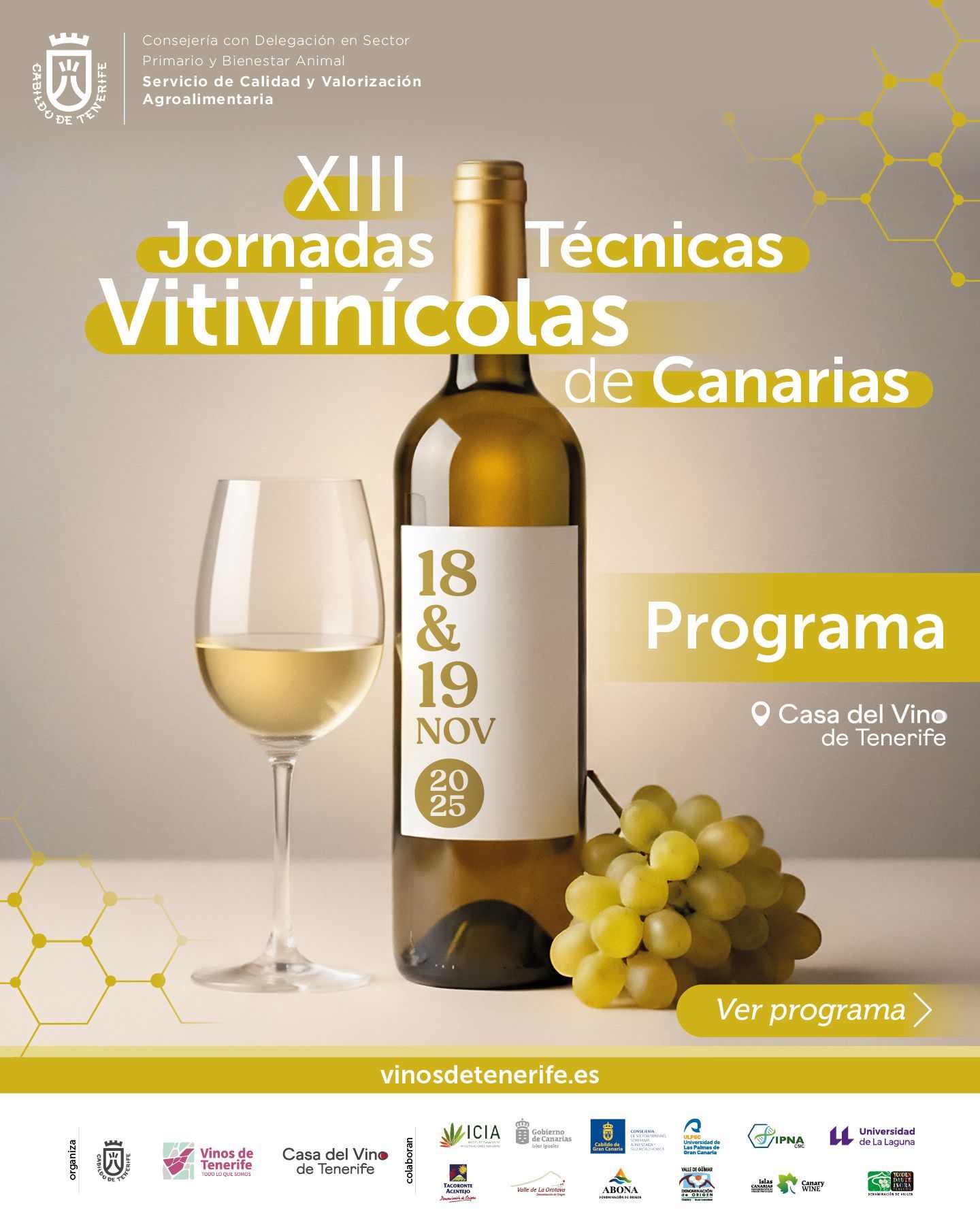 La cita más importante para los profesionales y amantes del vino en Canarias regresa un año más. Las XIII Jornadas Técnicas Vitivinícolas de Canarias reunirán en la Casa del Vino de Tenerife a investigadores, técnicos, viticultores y bodegueros para compartir los últimos avances, proyectos y tendencias del sector.