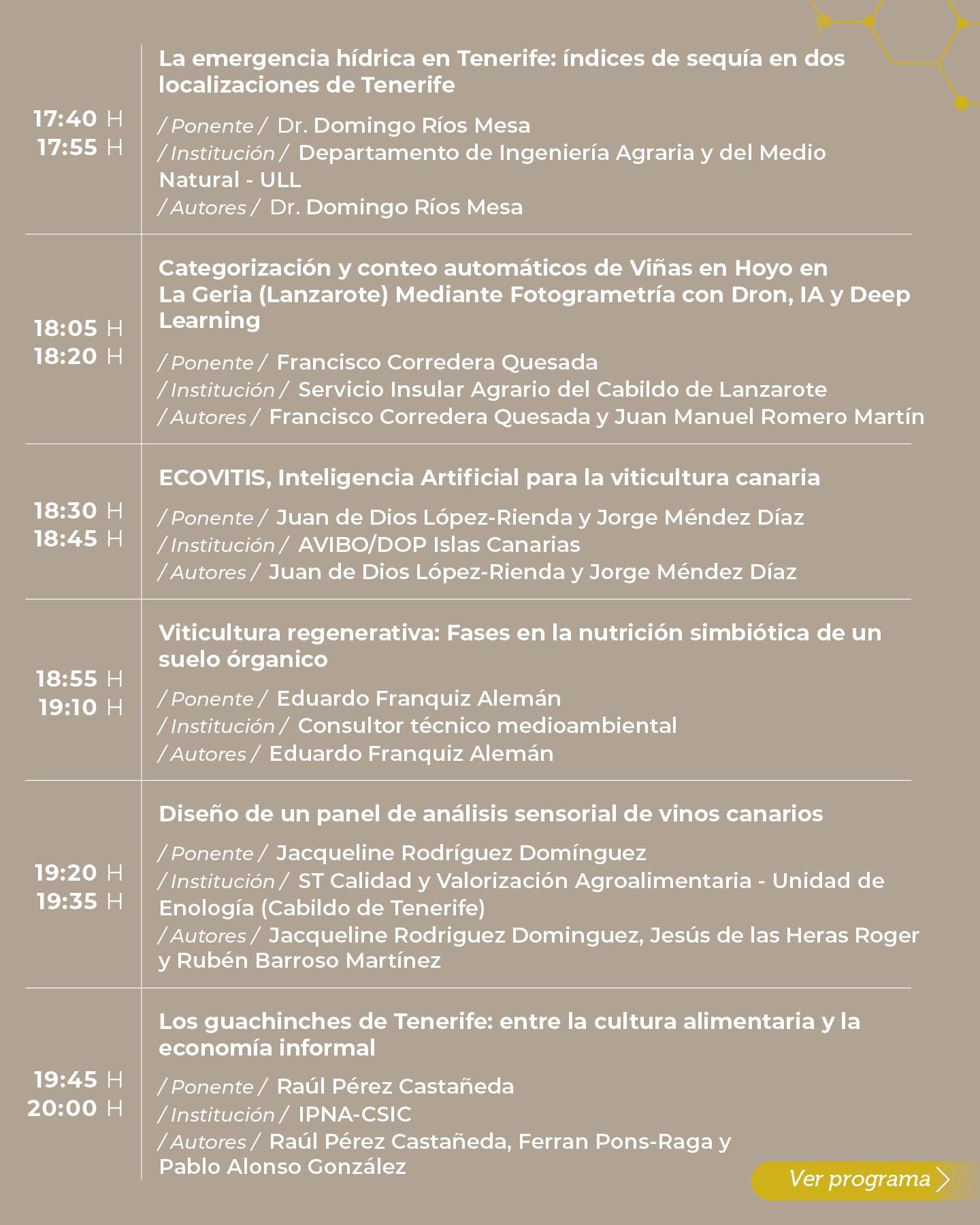 Durante dos intensas jornadas se abordarán temas clave como la caracterización de suelos antiguos, la viticultura regenerativa, el uso de inteligencia artificial en los viñedos, la emergencia hídrica en el archipiélago o la historia vitivinícola insular. Un punto de encuentro para aprender, debatir y seguir impulsando la calidad y sostenibilidad del vino canario.